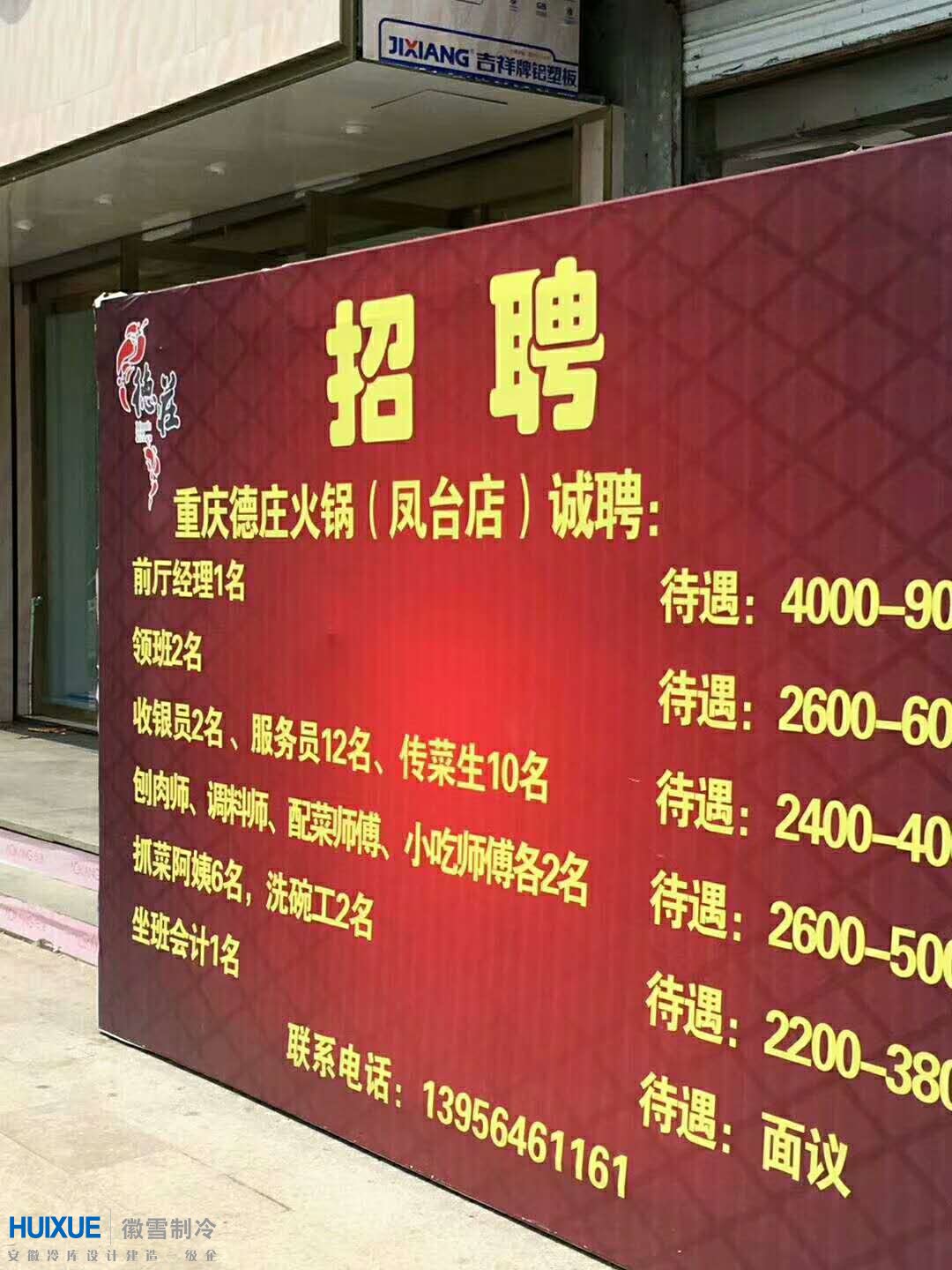 淮南市鳳臺縣德莊火鍋酒店冷庫安裝建造商:安徽徽雪制冷設(shè)備工程有限公司